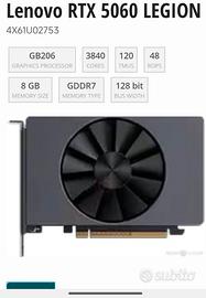 Lenovo GPU compact GeForce RTX 5060 Architettura NVIDIA Blackwell 8 GB di memoria GDDR7 Larghezza di banda della memoria di picco fino a 448 GB/s Supporta 3 connettori DisplayPort e 1 connettore HDMI Interfaccia PCI Express: PCIe 5.0 x Nuova, marzo 2026. Non cerco scambi con altra componentistica Laptop, PC.