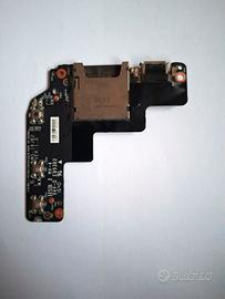 Vendo scheda I/0 per notebook comprensiva di porta USB, lettore di schede SD e pulsanti, come da foto. Componente originale, smontato da portatile, integro a livello strutturale e visivamente in buone condizioni, con normali segni di utilizzo. La scheda non è stata testata, pertanto viene venduta come ricambio o per riparazione/ recupero parti. Ideale per tecnici, hobbisti o per chi deve sostituire una scheda l/O danneggiata su notebook compatibili. Venduta come da foto, senza garanzia di funzionamento.