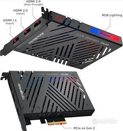 Vendo scheda live streaming acquisizione Pcie Avermedia gamer duo GC570d 4K rgb. la scheda è immacolata, usato pochissimo. Competa di scatolo originale e manualistica Questa versione ha 2 uscite video e una per il monitor, quindi è possibile contemperamento attaccare una webcam e un secondo monitor per l'acquisizione oltre al monitor principale del PC.