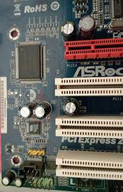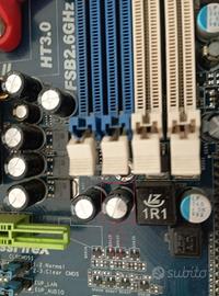 La scheda madre funziona ma a volte non si accende con tutti i moduli di ram installati oppure tende a bloccarsi, presenta 2 condensatori che si sono gonfiati un po di recente (uno vicino agli slot pci e uno vicino agli slot della ram, come si vede nelle foto), ne erano già stati sostituiti alcuni e non dava problemi.