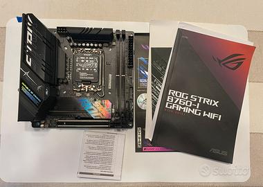 Scheda madre Asus ROG STRIX B760-I GAMING WIFI. Supporta processori Intel Core 14th, 13th & 12th Gen. Tecnologia memoria RAM DDR5. Socket CPU LGA 1700. Presenti le istruzioni e componenti sigillati