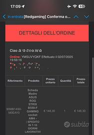 Vendo per errato acquisto, la scheda madre è ancora imballata e non l’ho neanche tolta dalla busta. È stata ordinata il 2-07-2025 ed è arrivata il 15-07. Purtroppo non c’è il reso e quindi la vendo un po’ a meno ma ripeto non è stata neanche tirata fuori. Consegna a mano e spedisco