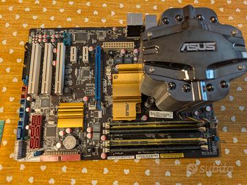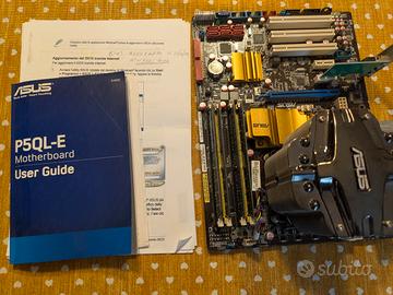scheda madre asus P5QL-E completa di 4 GB di RAM e microprocessore INTEL core 2 duo E8400 con raffreddatore a torre, scheda di rete e scheda video Asus da 512 mb.