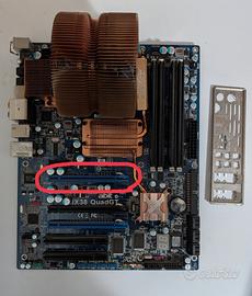 vendo scheda madre abit ix38 QuadGt in con difetto il pcie x16 evidenziato in foto non funziona, ma il x4 e l' altro x16 funziona perfettamente come tutto il resto.