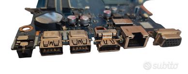 Scheda madre originale HP per laptop 250 G6 con CPU Intel Core i3-7020U, supporta RAM DDR4, possiede uno slot M.2, uno slot per una porta SATA e uno slot per inserire il lettore CD/DVD, vari slot per ulteriori porte USB etc.. Possiede integrate due porte USB, un HDMI e un VGA per uscita video, una porta RJ45 per connessioni LAN Ethernet, un connettore audio, tutto come mostrato in foto. In caso di necessità di ulteriori moduli, dissipatore, cavetteria, viti, etc... contattarmi, altrimenti la scheda verrà spedita come mostrato dalle foto. La scheda madre è stata perfettamente testata prima di essere smontata e risulta perfettamente funzionante in stato eccellente. Essa verrà imballata molto accuratamente, dopo essere stata smontata è stato resettato il CMOS (per un reset del BIOS) tramite la batteria a tampone. Servizi di spedizione disponibili con Tuttosubito. Per qualsiasi domanda non esitate a contattarmi!