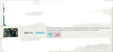 NUOVA MAI USATA Scheda di interfaccia Ethernet. Gestione protocolli TCP-IP e UDP, invio e-mail. web server integrato, programmazione centrali via Internet.