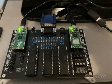 Vendo scheda SBC Picocomputer RP6502 assemblata e testata con componenti originali no cinesi acquistati su Mouser/Digikey. La scheda comprende: - Raspberry Pico 2 (VGA) - Raspberry Pico 2W (RIA) - CPU 65C02 WD 14Mhz - VIA 65C22 WD 14Mhz - RAM ASC1008-55N 512K Sono compresi nell'inserzione cavo OTG per collegamento Hub Usb. Non sono compresi monitor, mouse, tastiera, chiavetta 8gb usb e hub usb.