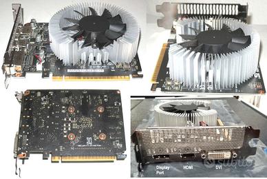 NVidia Geforce Serie 10, versione oem della Asus (venduta solo con i pc Asus). La serie 10 è l'ultima che ha i drivers anche x Win 10/8/7 a 32 bit (v.391.35), mentre le schede più recenti usano solo le versioni a 64bit. [Posso anche scambiare con hard disk sata 3,5" da 4+ Tb (5400 rpm), previa verifica dati smart salute di "Crystal Disk Info"]. Dissipatore maggiorato e "libero" con ventola generosa, x funzionamento silenzioso (senza overclock ..) e pulizia semplificata; la ventola è gestibile in modo fine tramite tools come 'Asus GPU-Tweak-III' oppure 'MSI Afterburner'. Occupa 2 slot ma è "corta", ideale per case piccoli; aggiunto comodo filtro antipolvere alla griglia posteriore. 75 Watt max di consumo, non richiede alimentazione aggiuntiva. Ottima per HTPC, elaborazione video e giochi fino a 1080p nonché retrogaming; chip NVEnc Pascal x codifica accelerata H264/h265 (qualità circa 7/10 contro i 9/10 della CPU), transcodifica e streaming in tempo reale (media server). # Scheda video vga monitor MSI Gigabyte Zotac computer desktop schermo pc lcd ips hdmi dvi display hd full hd samsung acer asus hp dell NVidia display port rtx #