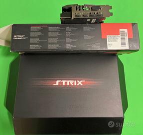 SCHEDA VIDEO ASUS ROG Strix RX Vega 56 IN PERFETTE CONDIZIONI ! VENDO PERCHE' HO SMESSO DI GIOCARE CON IL PC Risoluzione: 7680 x 4320 pixel GPU: AMD Radeon RX VEGA56 Memoria video: 8 GB HBM2 Frequenza GPU: Modalità OC - 1573 MHz (Boost Clock) ET 1297 MHz (Base Clock) Raffreddamento: Sistema a tripla ventola brevettata Wing-Blade con certificazione IP5X e tecnologia MaxContact per un migliore trasferimento termico dalla GPU. Uscite Video: 2x HDMI 2.0 (ottimizzate per VR). 2x DisplayPort 1.4. 1x DVI-D. Dimensioni: 29,8 x 13,9 x 5,25 cm (ocupa circa 2,5 slot). Alimentazione: Richiede 2 connettori da 8-pin PCIe; alimentatore consigliato da almeno 750W. Illuminazione: Supporto ASUS Aura Sync RGB sia sul pannello frontale che sul backplate. [1, 2, 3, 4, 5] Caratteristiche Esclusive ASUS FanConnect II: Due header a 4-pin controllati dalla GPU per collegare ventole del sistema e ottimizzare il raffreddamento in base alle temperature della scheda. Auto-Extreme Technology: Processo di produzione automatizzato al 100% per garantire maggiore affidabilità. [1, 2, 3]