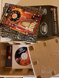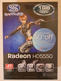 Scheda Video ATI Radeon HD5550 PCI-E 1GB DDR2, con uscite VGA, DVI e mini din a 7 pin.