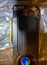 Dettagli: Graphics Processing Unit GeForce GTX 670 Graphics core speed 915 MHz - boost 980 MHz Memory 2048 MB Memory type GDDR5 Memory Speed 6008 MHz Memory bus 256 bit Shader processors 1344 DVI 2x HDMI 1x DisplayPort 1x Interface PCI Express 3.0 Supplemental power connector 2x PCI-E 6-pins Cooling technique active SLI 3-way Ritiro a mano in zona Modena