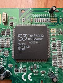 La S3 Trio 3D/2X (chipset 86C368) è una scheda grafica vintage integrata o su scheda di espansione (PCI o AGP 2x) rilasciata nel 1999, nota principalmente per le sue capacità grafiche 2D e di accelerazione video di base Specifiche Tecniche - Chipset/GPU: S3 Trio3D/2X (nome in codice: 86C368). - Interfaccia Bus: AGP 2x. - Memoria Video: 8 MB, di tipo SGRAM con un'interfaccia a 64 bit. - Frequenza Core/Memoria: Tipicamente 100 MHz per il core e la memoria. - RAMDAC: Integrato con una velocità di 230 MHz. - Accelerazione 3D: Offre capacità 3D di base, ma è più apprezzata per le sue solide prestazioni 2D e l'accelerazione video (MPEG-2). - Supporto API: Supporta DirectX 3 e DirectX 5. - Connettore Video: Dotata di un connettore VGA a 15 pin. Caratteristiche e Utilizzo Questa scheda era destinata al mercato dei PC aziendali e domestici (SOHO) di fine anni '90, non ai giocatori incalliti. La sua architettura a 128 bit per il motore 2D garantiva ottime prestazioni per le applicazioni di produttività dell'epoca Oggi, la S3 Trio 3D/2X è considerata un componente vintage ricercato dagli appassionati di retrocomputing che desiderano costruire o riparare sistemi PC compatibili con i sistemi operativi dell'epoca come Windows 95, 98, e NT. I driver sono disponibili su siti specializzati in hardware retro, come Vogonsdrivers o The Retro Web