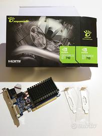 Vendo scheda video Manli GeForce GT710 usata in ottime condizioni. Caratteristiche: Interfaccia: PCI Express 2.0x16 Chipset: Nvidia GeForce GT710 Memoria: 2GB DDR3 Uscite video: HDMI, DVI, D-Sub Note: raffreddamento senza ventole, totalmente silenziosa