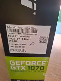 vendo gtx 1070 founders edition. ancora con pellicola vedi foto. 8 gb 199 euro possibilità di ritiro a mano con qualsiasi prova