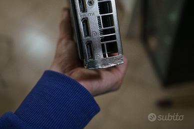 Come visibile nell'ultima foto, il pannello metallico posteriore (staffa I/O) presenta alcune ammaccature e graffi. Questi difetti sono puramente estetici e NON influiscono in alcun modo sull'usabilità o sulle prestazioni della scheda. Tutti i porti funzionano perfettamente e la scheda si inserisce regolarmente nello slot PCIe.