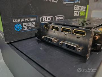 appena smontata dal PC per upgrade. cartteristiche: WINDFORCE 3X 600W cooling system Flex Display Technology Powered by NVIDIA GeForce® GTX 980 TI GPU 6GB GDDR5 memoria 384-bit Boost:1279 MHz/ Base: 1190 MHz in OC Mode Boost:1241 MHz/ Base: 1152 MHz in Gaming Mode