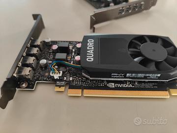 Vendo scheda Nvidia PNY Quadro P620 da 2Gb usate in ottime condizioni, sostituite per passaggio a scheda che gestisce 8K. GPU Processore: NVIDIA Quadro P620 CUDA Cuori: 512 GPU Memoria: 2 GB GDDR5 Interfaccia del sistema: PCI-Express 3.0 x16 4x DisplayPort Adapter, 1x DVI SL ( con 1 adattatore Mini DisplayPort to Displayport ).