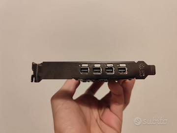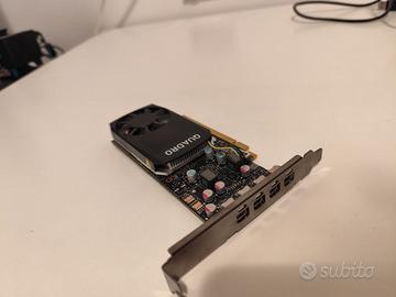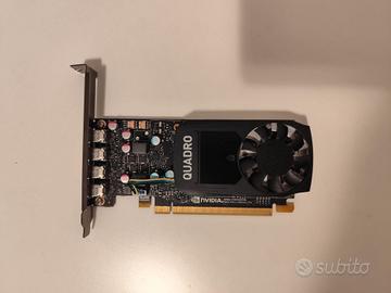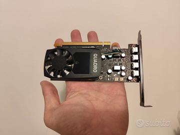 Vendo scheda Video Nvidia Quadro P620 con 4 uscite mini display port. Scheda grafica 2GB, GDDR5 PCI Express 3.0 x16, slot singolo, 4x Mini-DisplayPort, supporto 5K, ventola attiva ultrasilenziosa. Scheda video recuperata da PC CAD, perfettamente funzionante e testata.