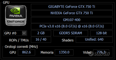 Scheda video PC Gigabyte Geforce GTX 750 Ti 2GB