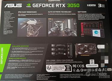 Vendo scheda video ASUS Dual GeForce RTX 3050 6GB GDDR6 in ottime condizioni, perfettamente funzionante e sempre utilizzata senza problemi. Compatibile con qualsiasi PC dotato di slot PCI Express x16. Ideale per chi cerca una scheda video moderna e versatile, perfetta per: Gaming in Full HD (1080p) con ottime prestazioni Giochi competitivi (Fortnite, FIFA, Warzone, ecc.) Utilizzo con tecnologie NVIDIA come Ray Tracing e DLSS Editing leggero e utilizzo quotidiano Grazie al buon rapporto tra prestazioni e consumi, rappresenta una soluzione ottima per build gaming equilibrate. 🔧 Caratteristiche principali: 6 GB di memoria GDDR6 Architettura NVIDIA Ampere Supporto a Ray Tracing e DLSS Tecnologia Auto-Extreme ASUS Sistema di raffreddamento Dual Fan Uscite video: HDMI, DisplayPort e DVI Consumo energetico contenuto (circa 120W, con alimentazione PCIe 8-pin) 📦 Scheda tenuta bene e pronta all’uso 💰 Prezzo trattabile