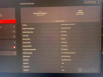 - Prezzo leggermente trattabile - Vendo per passaggio a modello superiore Tenuta in ottime condizioni, mai overclockata e mai usata per giochi pesanti. Scheda video ideale per giocare a lavorare in 1080p a dettagli massimi, performante anche in 1440p con dettagli medi - 8GB GDDR6 - Supporto DirectX 12 Ultimate - HDMI / DisplayPort - Ottima efficienza energetica - Clock base: ~2055 MHz - Boost clock: fino a ~2635 MHz