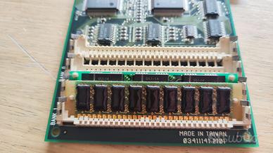 Sono inclusi due banchi di RAM SIMM con parità, uno con 9 chip coperti da resina ed uno con tre chip di memoria. Non ricordo onestamente se fossero la coppia montata all'epoca, quella con la resina sicuramente ma non so la capacità dei due banchi.