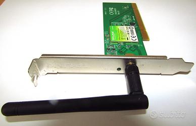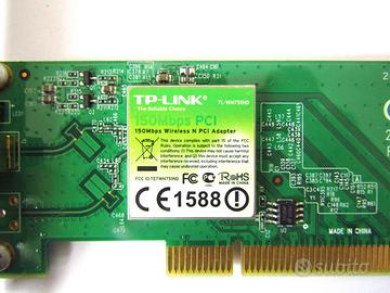 Scheda wifi TP-LINK 150 Mbps per PC desktop per slot PCI. Funzionante, completa di antenna.