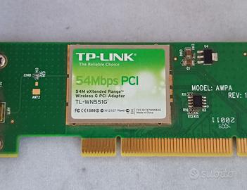 SCHEDA WIRELESS NETWORK TP-LINK PER COMPUTER ATTACCO PCI 54MB CON ANTNNA BUONE CONDIZIONI