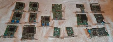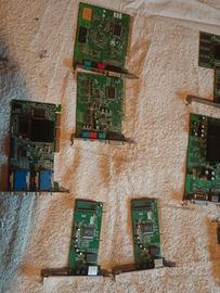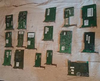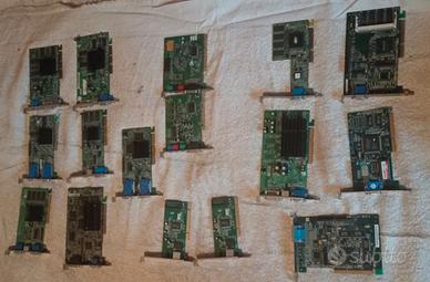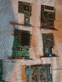 60 x tutto o 5 al pezzo trattabile valuto proposte Tutto x pc fisso desktop workstation server retro (forse vintage) smontati da PC all'epoca funzionanti 12 schede video agp -matrox 815-01 rev:a mga-g100a-e 9818ku247 g+/proa/bbi/20 (VGA) -s3 trio 3d/2x on band qca2hc st-362a rev:3.2 s3vi4e-0141 d9037480 (VGA) -ramdeon 9550 128mb ddr 95lxad128 (VGA DVI S-Video) -matrox 856-02 g2+dmila/8d/cpq p20590cevjeqf0 400778-002, 402125-001 vga con slot espansione memoria, mgi (VGA) -ati grafics rage 128 n625 e52914 sfl 40v0 9947 94v0 PN 109-66500-00 ices-003 classe b (VGA 128mb RAM) -asus rv280 le a0625 ver 1.03 128mb ddr VGA DVI composito -radeon 7000 64m ddr v/d/v/o PCB 35 f141 go 01 VGA DVI composito -matrox 971-0302 rev:a c322 mgi g45+mdha16d/ibm eton et866 doppia VGA -matrox 981-02 rev:a c300 mgi g45+mdha16dle mt05360 svga g460 dh16 doppia VGA -ATi Radeon VE 64m w/TV 220403 Radeon ae0152-185-02r1-f009 clt-m 94v-0 kt_rv100_sd rev:2.1 doppia VGA e porta S-Video -radeon 7000 74m tvo pqb-rv100-p112 VGA, S-Video e video composito CVBS -matrox 949-00 mgi g4+mtva16gri vga e (porta piu grande della vga sempre video simile alla midi) 2 schede audio PCI creative ct4810 e ct5803 2 schede rete PCI 10 100 1000 tp-link tg 3269