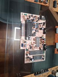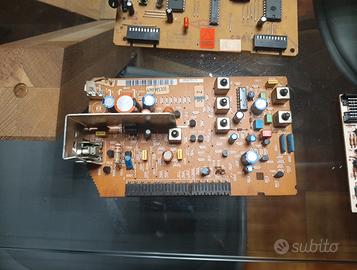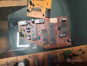 Vendo schede elettroniche con vari componenti tra cui condensatori, porte, resistenze ecc.