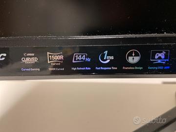 Schermo curvo MSI Response time 1ms Frameless design Gaming OSD APP 144hz