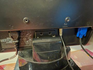 Vendo schermo/monitor HP Compaq da 19 pollici, nero con cornice grigio scuro e base quadrata. Le misure senza la base sono A. 31cm x L. 51cm. Ad entrambi i lati sono presenti gli altoparlanti, audio nitido e cristallino. Inclinabile a piacimento e possibilità di cambiare le impostazioni dello schermo (illuminazione, colori, tipologia, ecc) Presenta solo un piccolo segno a sinistra, lo vendo per inutilizzo, insieme ai cavi di alimentazione, jack audio ed al cavo di collegamento pc. Disponibile alla spedizione e vendita di persona.