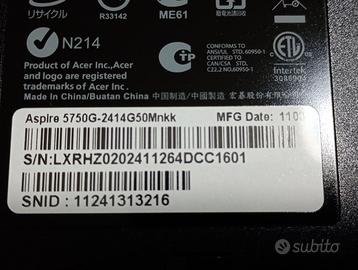 scocca completa Acer Aspire 5750G-2414G50Mnkk