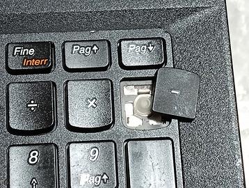 la condizione delle plastiche è molto buona, gli unici difetti rilevati sono un tastino staccato della tastiera, documentato in foto, e un leggero alone di forse un adesivo appena visibile accanto al logo sulla top cover. Presenti la tastiera, il touchpad, powerjack, speakers, slitta HD, masterizzatore DVD, cavetteria e viteria.
