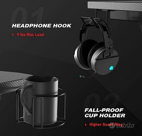 •Organizzazione ottimale: dotata di pratici accessori come un supporto per cavi, un porta CD, un porta bevande e un porta cuffie. Mantieni il tuo spazio ordinato e a portata di mano senza rinunciare alla funzionalità.
