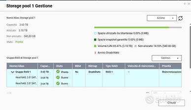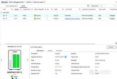 Vendo nr. 2 dischi rigidi SATA Seagate IronWolf per NAS, codice ST4000VN008 da 4 TB, 5.900 giri/min, 64 MB, 3,5" come si vede dagli screenshot del software NAS i dischi sono perfetti, senza nessun errore. Usati in ottime condizioni. Il prezzo si riferisci al pezzo singolo.