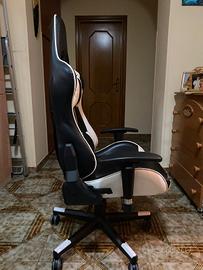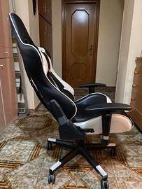 Sedia Gaming PRISP - bianco e nero. Sedia in ottime condizioni, usata pochi anni, nessuna lesione o rottura; altezza, cuscino schienale e schienale regolabili, braccioli regolabili in altezza e direzione.