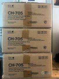 Seiko Instruments CH-705 – 3Color Ink Sheet Roll A4 (4 Rotoli) – Originale Vendo confezione originale Seiko Instruments CH‑705 – rotoli termici a trasferimento colore compatibili con stampanti Color Point 2 (formato A/A4). •3 colori (ink sheet roll) •4 rotoli per scatola •Prodotto nuovo, mai usato Ho 3 scatole disponibili.