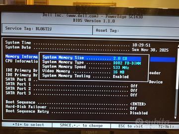 Dispone ancora di 2 slot di memoria liberi, e la possibilità di installare ulteriore CPU; può montare sino a 4 HDD e dispone di controller RAID Perc e scheda SCSI Adaptec.