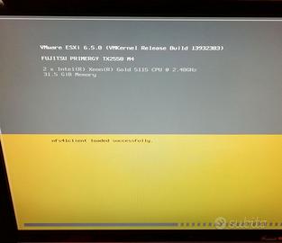 Vendo server Fujitsu Primergy TX2550 M4 funzionante, buone condizioni senza HDD Specifiche: - CPU: 2x Intel XEON Gold 5115 2.4Ghz (totale 20 core, 40 threads) - RAM: 32GB (2 DDR4-RAM da 16GB 1RX4 PC4-2666V-RC-11 ) - PSU: Doppio PSU 800watt 80 Plus Platinum - 6 porte Ethernet Rj45 - Vmware ESXi 6.5.0 Consegna a mano zona Busto Arsizio (VA)
