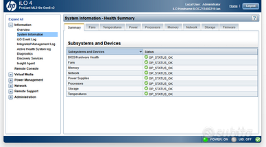 Server HP ML310e Gen8 V2 - Cpu Intel Xeon E3-1220v3 - 4 core, turbo boost 3.5Ghz - 4Gb Ram DDR3 ECC - 2 Dischi Western Digital RE4 - 7200rpm sata - testati senza errori - 2 LAN + 1 iLo Perfettamente funzionante, acceso, pulito e controllato.