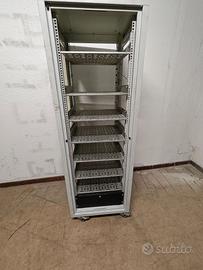 Vendo server rack 19”, completo di ripiani ventilati, ruote per facile spostamento e ciabatta elettrica già installata. Perfetto per server, NAS, switch, laboratori IT, uffici o home lab. ✔ Struttura solida e stabile ✔ Ripiani già montati, ottimi per dispositivi di rete ✔ Cassetto porta-oggetti ✔ Ruote per spostarlo facilmente ✔ Ciabatta integrata per alimentare subito l’attrezzatura