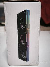 Vendo set di 3 ventole da 120mm Interstellar SE (colore nero), ideali per dare un look futuristico e prestazioni di raffreddamento ottime al tuo PC. Le ventole presentano un design unico con effetto "Infinity Mirror" (specchio infinito) sui lati e al centro, che crea un’illuminazione ARGB profonda e suggestiva. Caratteristiche principali: Connessione a incastro: Le ventole si collegano tra loro fisicamente (daisy-chain), riducendo al minimo il disordine dei cavi all’interno del case. Illuminazione ARGB: Completamente sincronizzabili tramite il software della tua scheda madre o controller dedicato. Controllo PWM: La velocità viene regolata automaticamente in base alla temperatura del sistema per il massimo silenzio. Condizioni: Ottime, perfettamente funzionanti e complete di scatola originale. Accessori inclusi: Set di viti per il montaggio e cavetteria specifica per il collegamento (come da foto). Perché acquistarle? Sono l'alternativa perfetta alle più costose ventole di marca (tipo Lian Li), offrendo un'estetica molto simile ma a una frazione del prezzo. Molto semplici da installare grazie ai contatti a scorrimento.