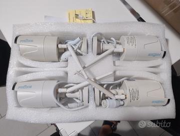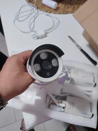 set composta da registratore con hard disk 500 GB, 4 telecamere wifi, cavo alimentazione per registratore e 4 per telecamere, cavo HDMI e mouse usb.