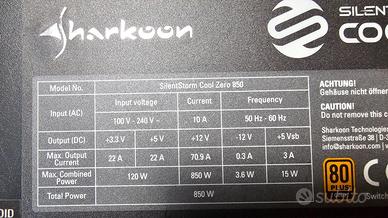 Alimentatore Sharkoon SilentStorm Cool Zero 850W - 80 Plus Gold. Ottimo per pc gaming o per pc di lavoro standard, completamente modulare con tutti i cavi originali. Ottime condizioni, lo vendo per passaggio a wattaggio superiore.