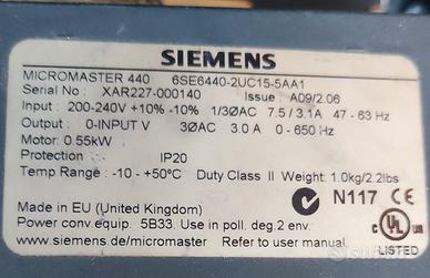 Vendo siemens micromaster 440 6se440 2uc15 5aa1 ottimo