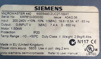 siemens micromaster 440 6se6440 2uc21 5ba1. Ottime condizioni