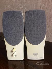 Set di due altoparlanti multimediali JUSTer per computer. Gli altoparlanti sono schermati magneticamente e vengono forniti dopo un uso attento e non prolungato. l'oggetto vintage non ha difetti ma può mostrare lievi tracce di usura: sono in buone condizioni e perfettamente funzionanti!