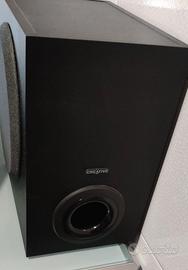 Potenza: Subwoofer rinforzato per bassi profondi e satelliti frontali a due vie per medi e alti cristallini.