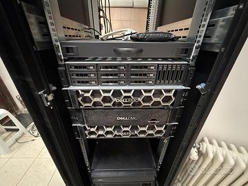 SISTEMA DI VIRTUALIZZAZIONE COMPOSTO DA: Server DELL™ PowerEdge R740 N.2 Server rack mount biprocessore configurati con: Processore N.2 Intel® Xeon Silver 4210R 2.4G, 10C/20T, 9.6GT/s, 13.75M Cache, Turbo, HT (100W) DDR4-2400 Chassis ConfigurationChassis with No Hard Drive, No Backplane chassis Riser Config 4, 3x8, 4 x16 slots PowerEdge 2U Standard Bezel 6 Standard Fans for R740/740XD RAM 128GB (8x16GB) RDIMM, 3200MT/s, Dual Rank Unità OtticaNo Internal Optical Drive Storage internoBOSS controller card + with 2 M.2 Sticks 240G (RAID 1), FH Trusted Platform Module 2.0. AlimentatoreDual, Hot-plug, Redundant Power Supply (1+1), 750W Interfacce N.1 Broadcom 57412 Dual Port 10GbE SFP+ & 5720 Dual Port 1GbE BASE-T N.1 Broadcom 5719 Quad Port 1GbE BASE-T Adapter, PCIe Full Height N.1 Broadcom 5719 Quad Port 1GbE BASE-T Adapter, PCIe Low Profile (Totale 12 lan). Le schede di rete possono essere configurate in Teaming N.2 SAS 12Gbps HBA External Controller N.1 Dell Networking, Cable, SFP+ to SFP+, 10GbE, Copper Twinax Direct Attach Cable, 1 Meter ManagementiDRAC9 Enterprise with virtual KVM remote management. Rack RailsReadyRails Sliding Rails with Cable Management Arm InterfacceFront ports: Video, 2 x USB 2.0, available USB 3.0, dedicated IDRAC Direct Micro-USB Rear ports: Video, serial, 2 x USB 3.0, dedicated iDRAC network port Sistema operativoVMware ESXi 6.7 U3 Embedded Image POS.002 Storage DELL™ EMC™ ME4024 N.1 Storage Array 2U configurato con: BaseDell EMC ME4024 Storage Array Hard DrivesN.8 1.2TB HDD 10K 512n SAS12 2.5in Hard DrivesN.16 Hard Drive Filler 3.5in, Single Blank Power SupplyPower Supply, 580W, Redundant, Flex Power CordsN.2 European Power Cord 220V Rack RailsRack Rails 2U BezelME4 2U Bezel Controller CardsN.1 12Gb SAS 8 Port Dual Controller SAS CablesN.4 12Gb HD Mini-SAS to HD Mini-SAS 0.5M Cable N.1 QNAP TVS-EC1580MU-SAS-RP NAS completa di dischi con interfaccia connessione diretta con sistema sopra descritto